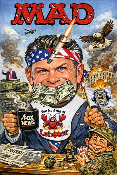 In his defense, the Secretary of War can’t help himself. The 2026 $200 billion is just a drop in his bucket list. An embarrassment of riches. Coffers must be replenished. Forever. Put your $$$ where Rambozo’s mouth is. Capital idea.